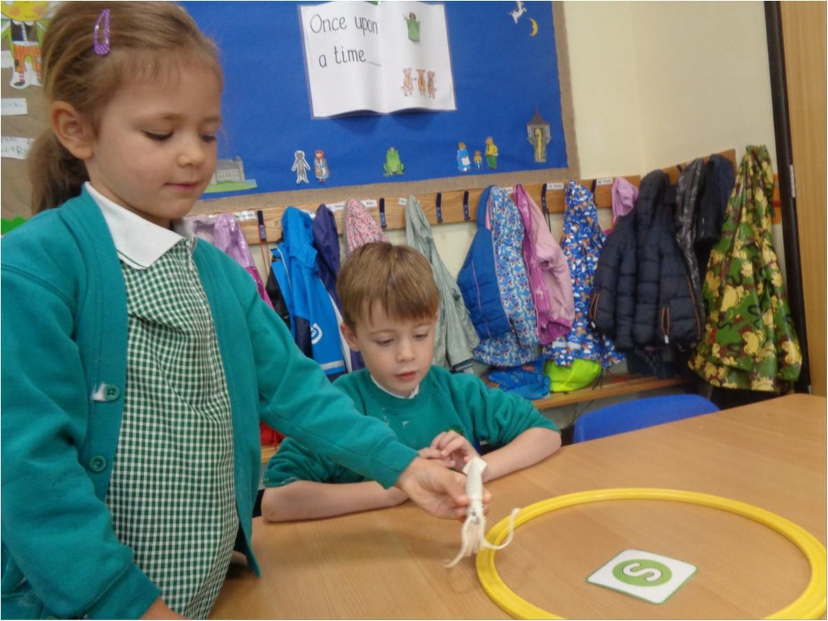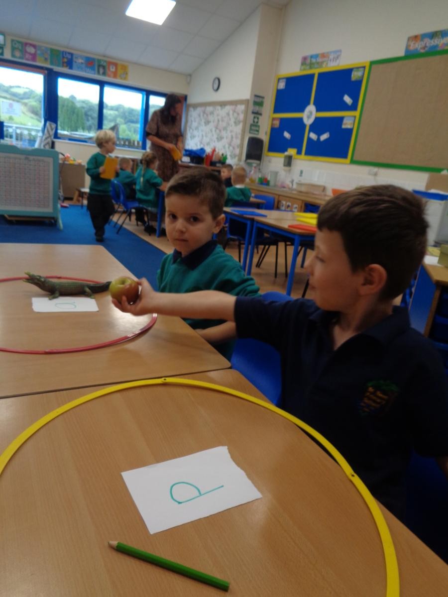 We matched the initial sound of objects to the corresponding letter.