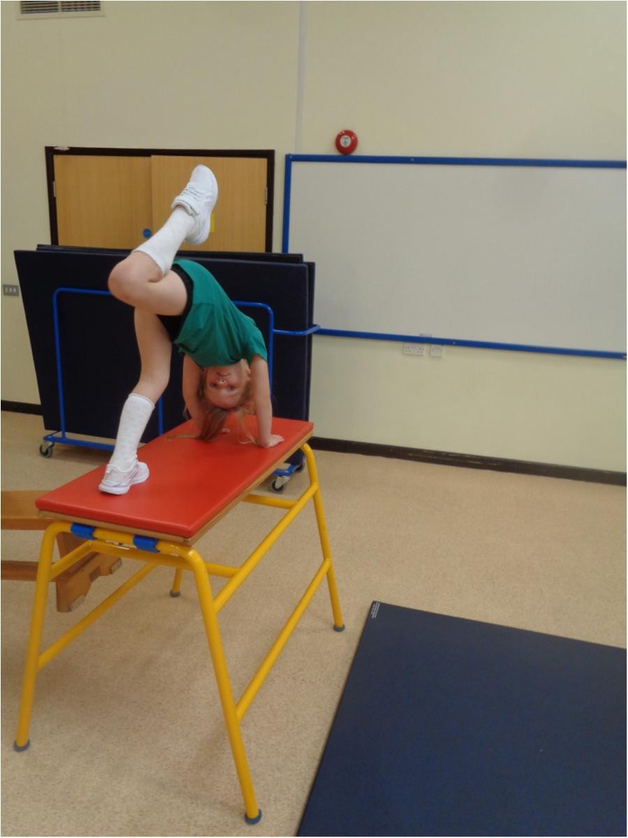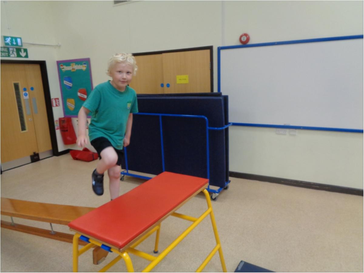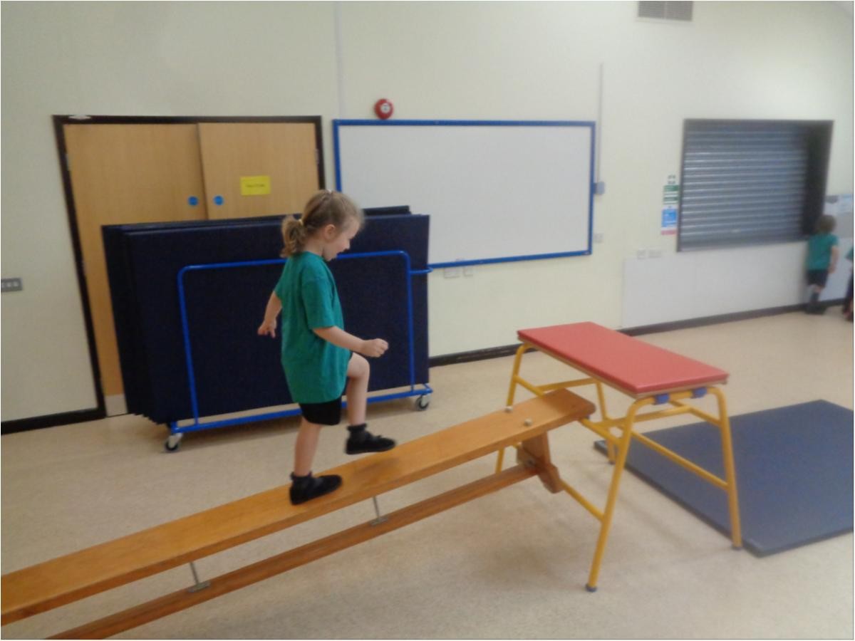 We have been using the gymnastic equipment in P.E and continuing our work on balance.