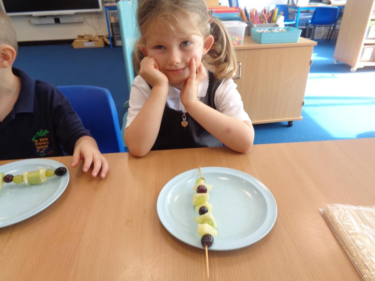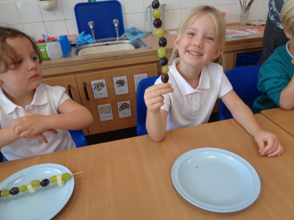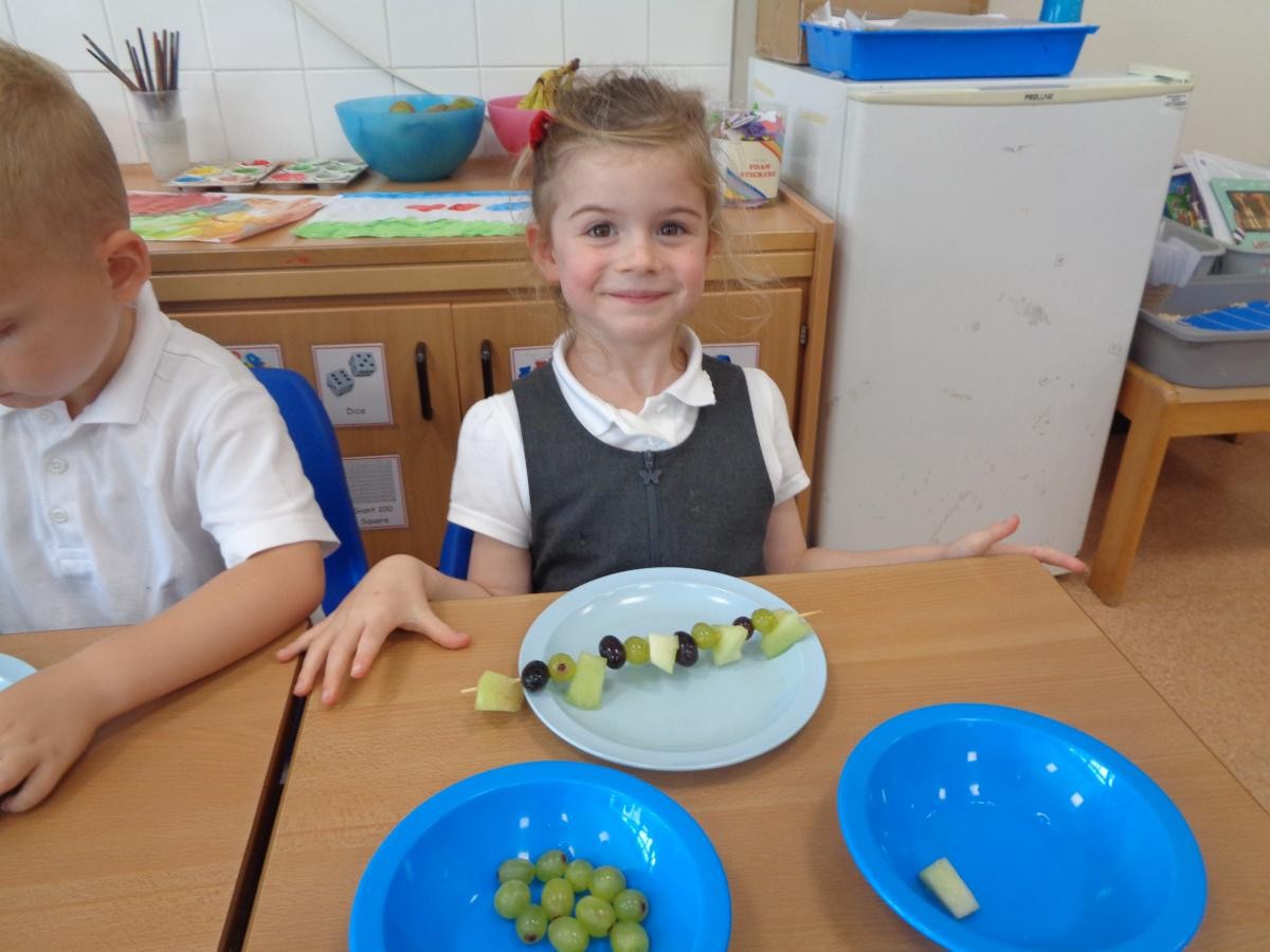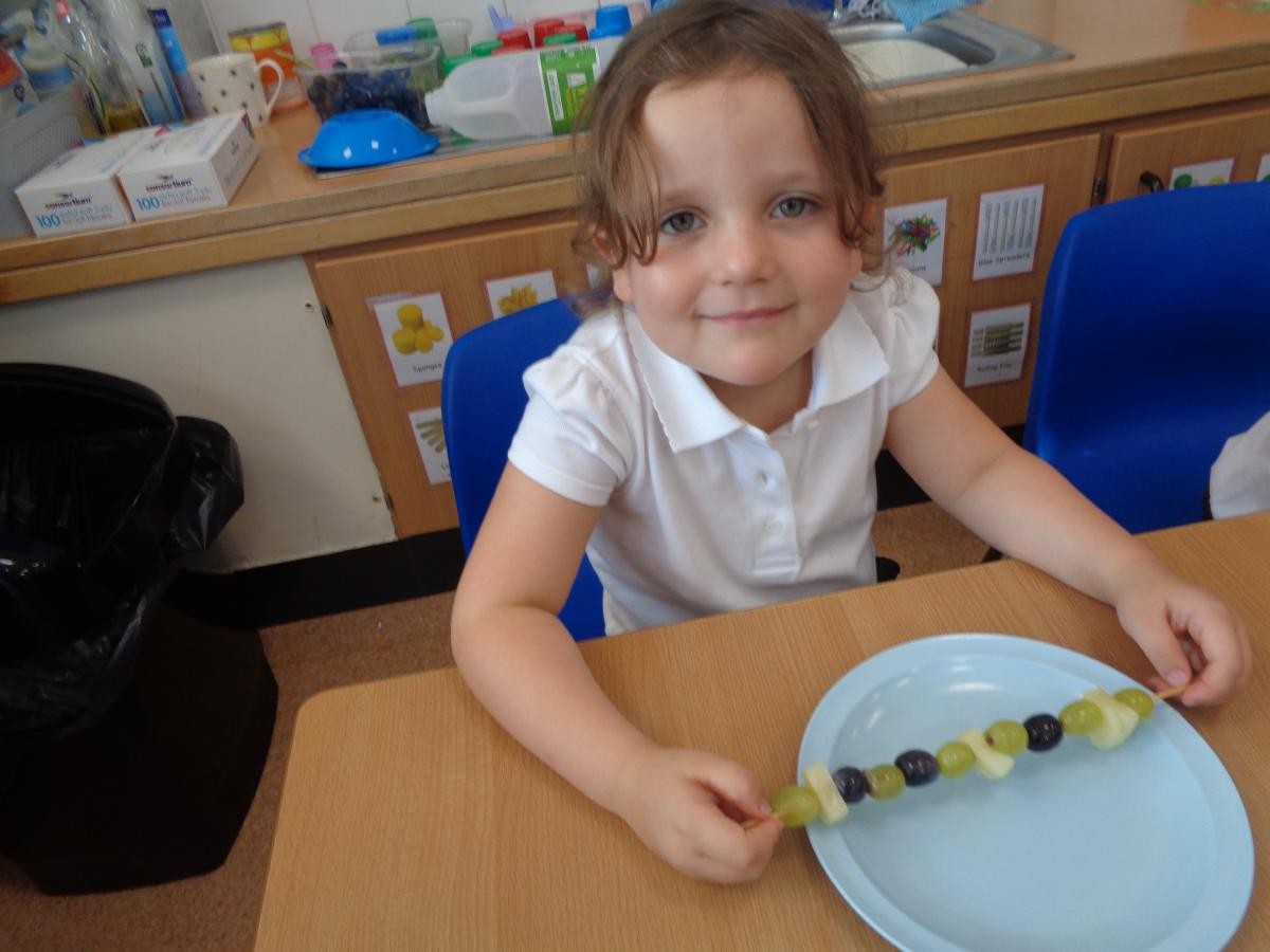 So we made fruit kebabs with a repeating pattern.