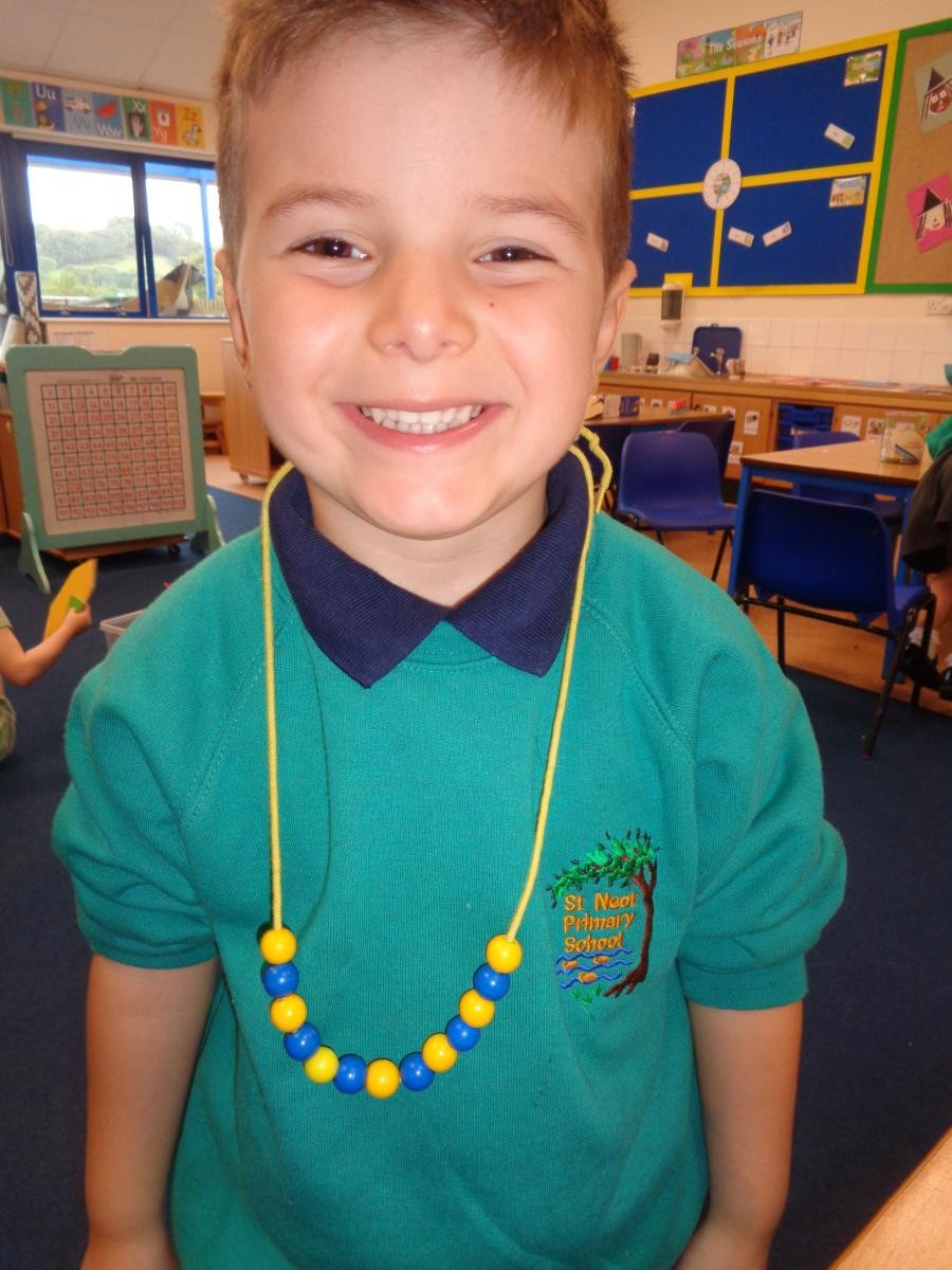 Yana made her repeating pattern necklace really long.